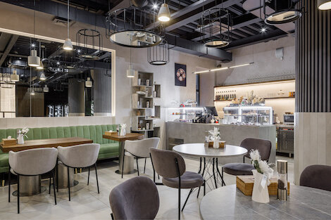 - Яркая сетевая кофейня на Молодогвардейской улице с жизнерадостным интерьером и полезными завтраками