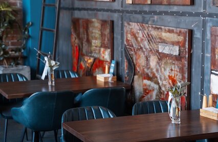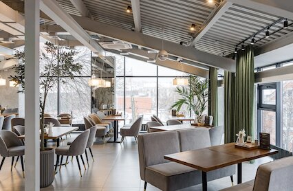 - Ресторан и банкетный зал на первом этаже отеля «ЭдНо» на улице Мориса Тореза