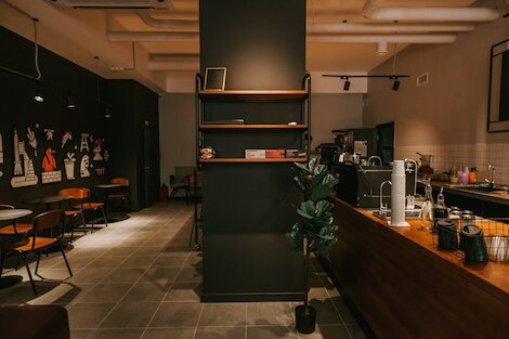 - Яркая сетевая кофейня на Молодогвардейской улице с жизнерадостным интерьером и полезными завтраками