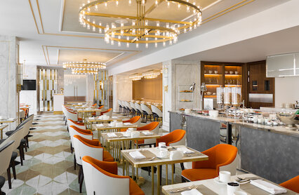- Элегантный ресторан с ранними завтраками в отеле Lotte Hotel