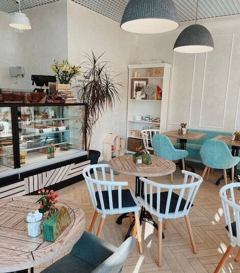 - Авторская кондитерская с приятным светлым интерьером и возможностью перекусить на месте