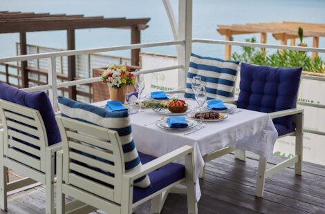 - Просторное кафе с европейской кухней и летней террасой с видом на море.