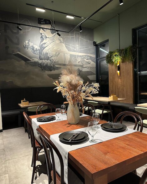 - Кафе европейской кухни со светлым интерьером и понятным меню
