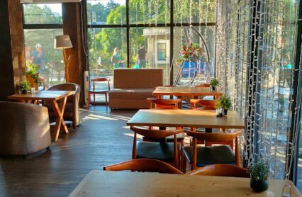 - Камерное кафе-лофт с мировыми хитами, от роллов и пиццы до борща и шашлыка