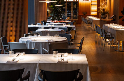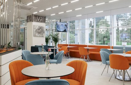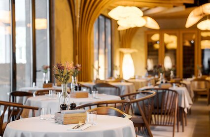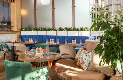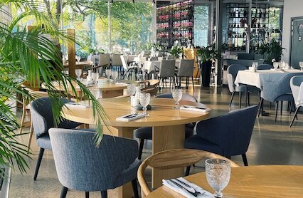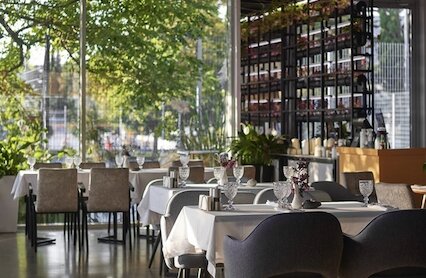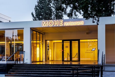 - Ресторан с лаконичным интерьером при одноимённом отеле