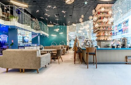 - Ресторан с большим выбором морепродуктов на первом этаже торгового центра «Моремолл».
