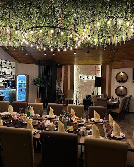 - Нарядный ресторан с традиционной грузинской кухней и живой музыкой