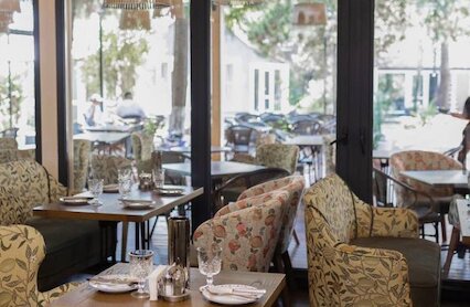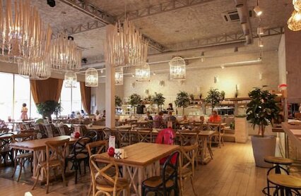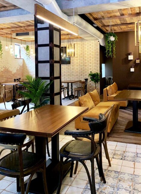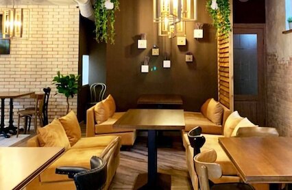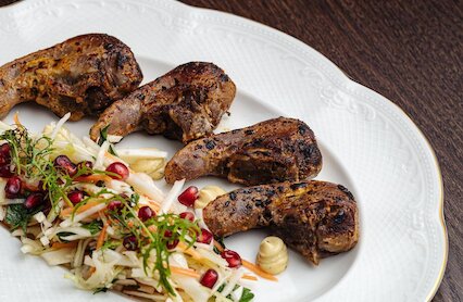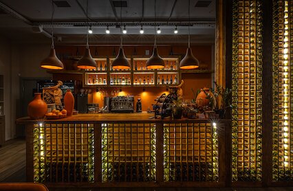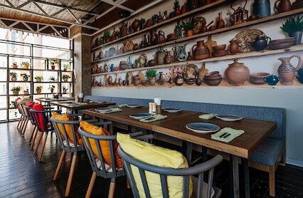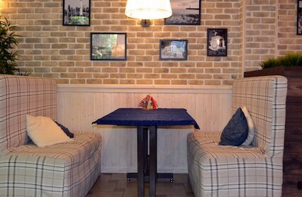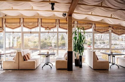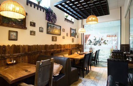 - Светлый ресторан с акцентом на грузинскую кухню и морепродукты