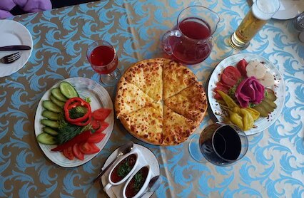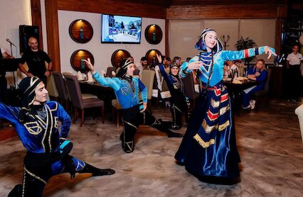 - Щедрый грузинский ресторан с традиционной кухней и танцами под национальную музыку
