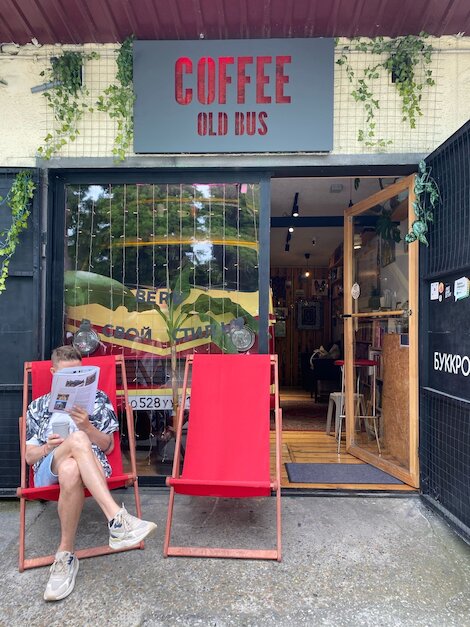 - Атмосферная кофейня с буккроссингом и настоящим отреставрированным фургоном внутри