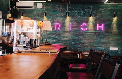 - Кальянная с ярким интерьером и полноценной кухней