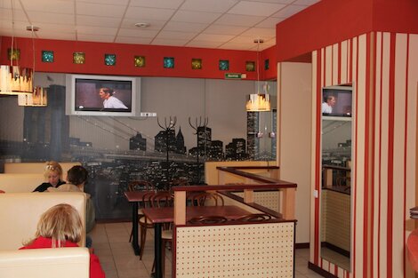 Вкусная пицца. Приготовили быстро. Удобное расположение в ТРЦ, в котором много детских учебных и развлекательных заведений. Можно перекусить между занятиями или после посещения детского театра. Можно вообще провести детский День рождения, посетив "Кота Вильяма" и пиццерию. Правда сама пиццерия расположена в цокольном этаже, так что видов из окон не будет, но оформлена очень уютно. Удобные диваны, есть электрические розетки для зарядки. Можно следить за процессом приготовления пиццы через большое окно.