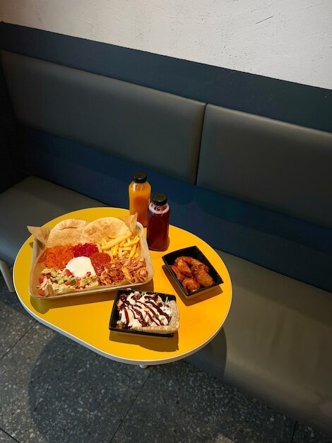 Придя домой были в шоке от заказанных шаверм. Начну с того, что повар перепутал наклейки с названиями. Шавермы все размягшие, верхушки заветренные, такое ощущение что повар приготовил их часа за 2, до нашего визита. При том, что в зале не было ни одного посетителя. Обе шавермы-горькие.Тухлое мясо. Также были заказаны нагетсы и картошка фри: нагетсы горькие, картофель фри мягкий как каша. Написала в тех.поддержку - жду возврата дс.