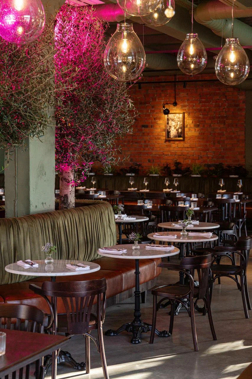 Зона проникновения в современное бистро сродни квесту. Уверен, что девять из десяти людей за основной вход приняли бы пару мускулистых слонов, нежели леопардовую улитку, а вот и нет – рабочие двери находятся сбоку как раз около «кислотного» брюхоногого. Внутреннее убранство колоритное. Обеденная зона одна – широкая и квадратная. Центральной доминантой переливается нежным цветом орхидеи импозантная пара оливковых деревьев. Рядом в стену внедрена балюстрада из чурчхел-балясин. Есть определенные шероховатости в плане визуального восприятия (в помывочном узле различимы явственно проступающие царапины) и мебельных решений (диван под массивной тушкой Алёши легко проваливается), но художественное исполнение и переплетение исторических территорий перекрывают технические недостатки. Например, на стене за баром устроен выразительный стилистический триптих. Две фрески отсылают к кисти Пиросмани, а третья вроде как схожа, но в ней угадываются черты итальянской старинной деревни.