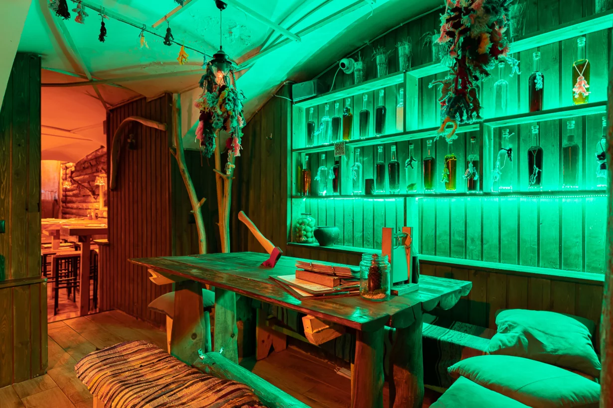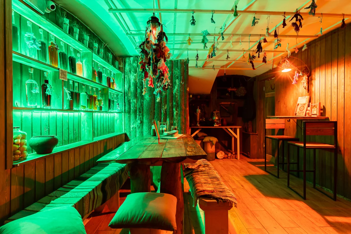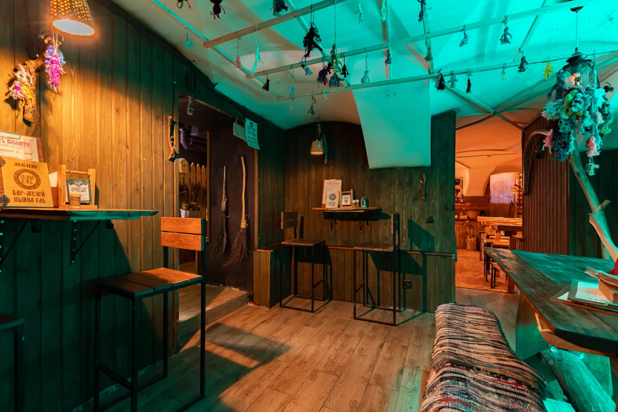 «Пьяна ель» — антуражный бар-музей в славянской тематике с фирменными настойками на улице Пестеля. У нас вы можете погрузиться в историю и атмосферу Древней Руси: стены бара украшены аутентичными экспонатами с qr-кодами, через которые можно узнать чуть больше об истории каждого предмета.