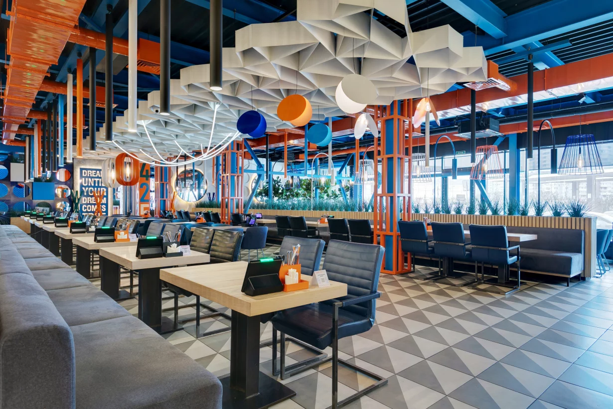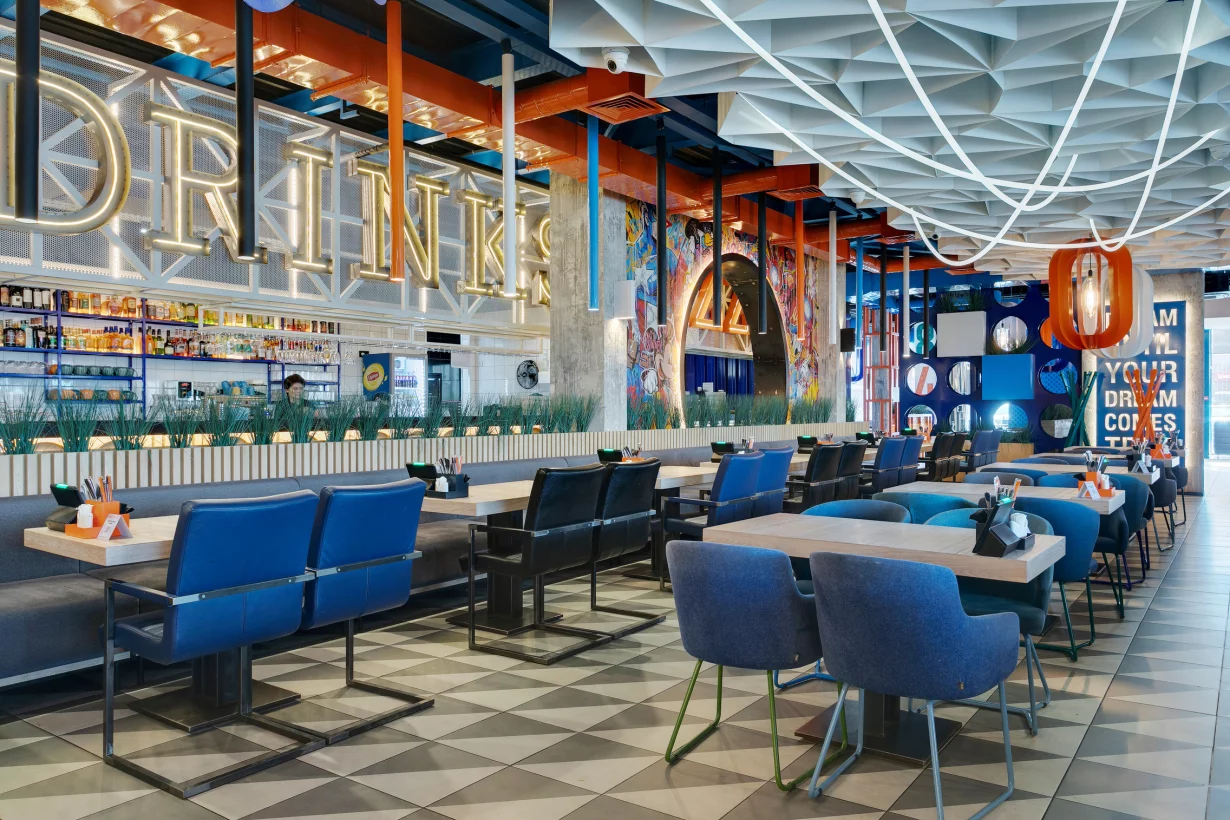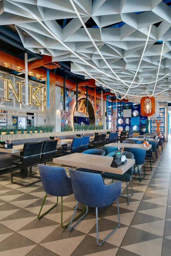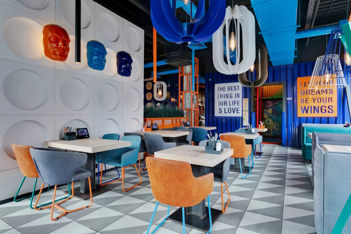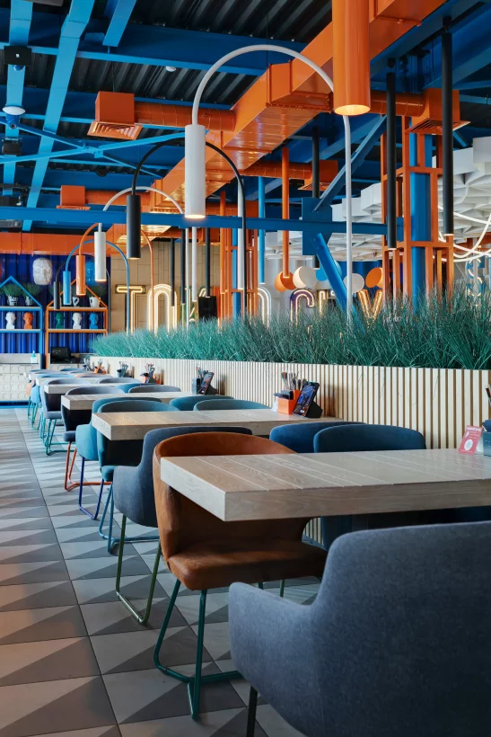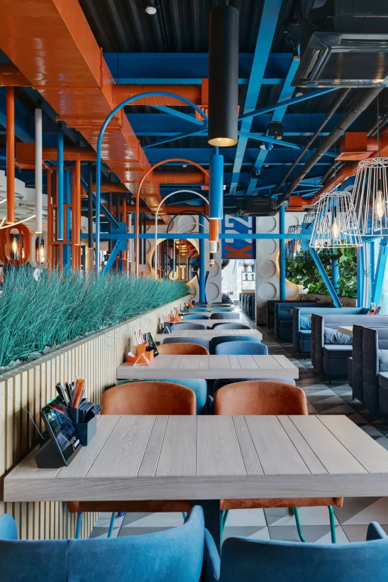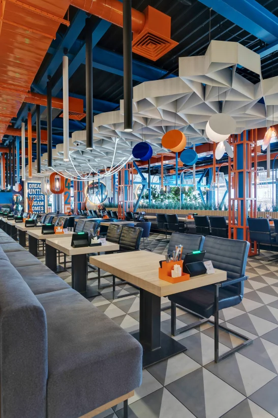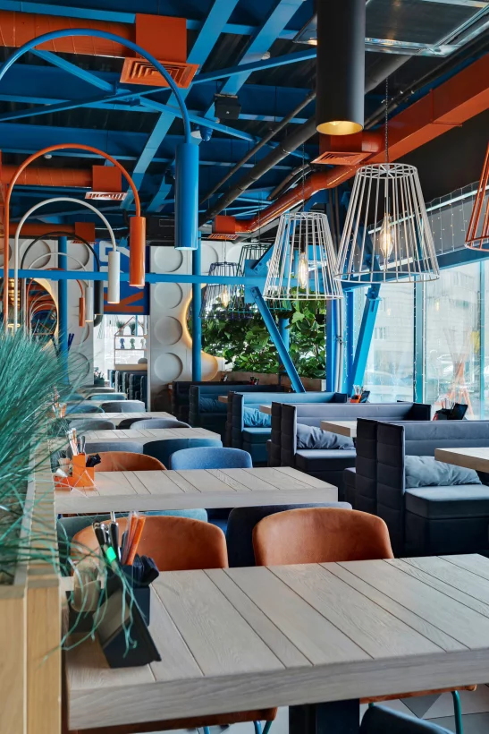Пространство для любого события: 4 зала разной вместимости и формата. Банкетный зал вмещает до 88 гостей, Кальянный — до 128, VIP — 56, зал возле детской комнаты — 72. Ресторан можно закрыть целиком для мероприятия до 340 человек.