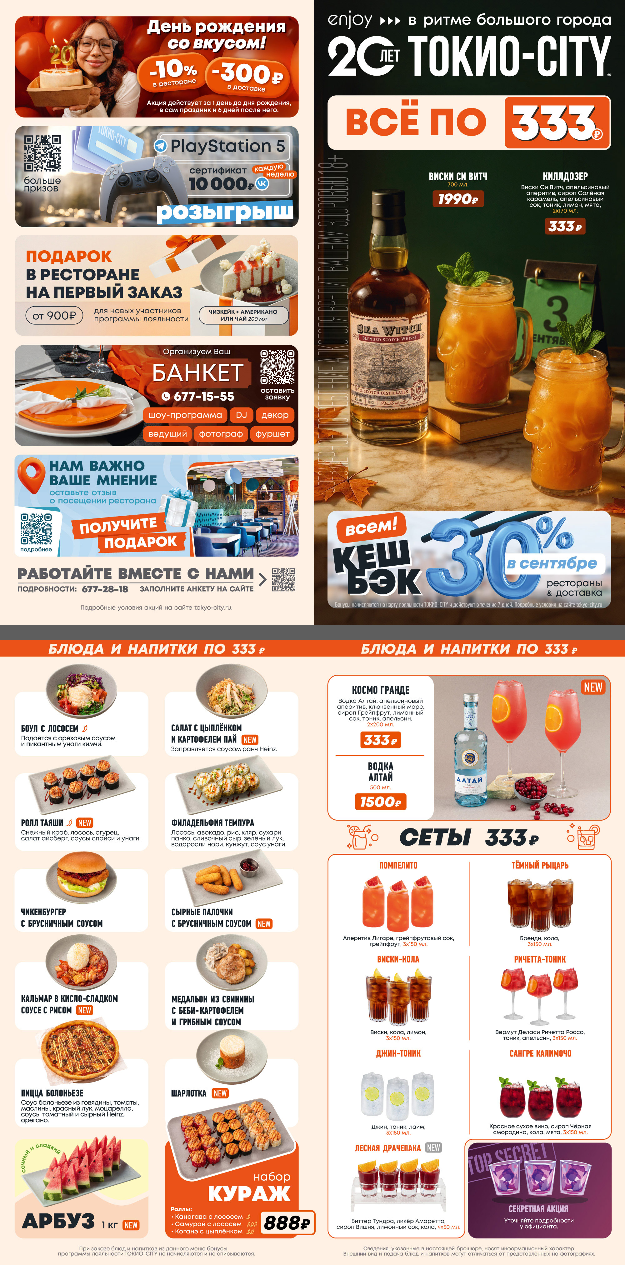 «Токио-City» — яркая сеть городских ресторанов с универсальным меню на любой случай.