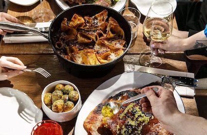 - Стильный итальянский ресторан с пастой ручной работы, авторскими коктейлями и поздними завтраками