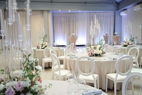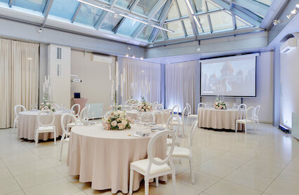 - Просторный банкетный зал в здании бизнес-отеля River Palace на набережной Макарова.