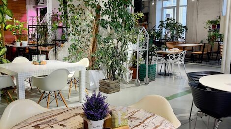 - Светлое кафе с вечеринками и лекциями в Волынском переулке