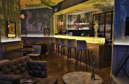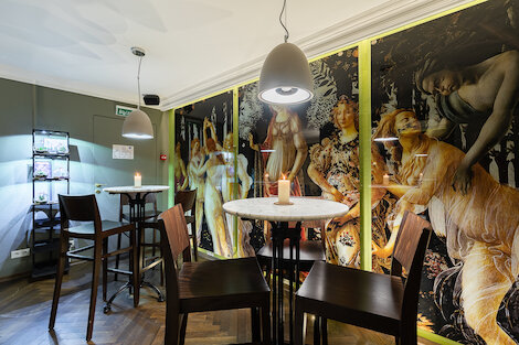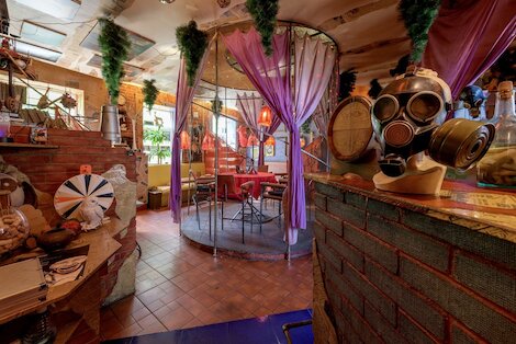 - Спокойный кафе-бар с пиранезианскими обоями и настойками