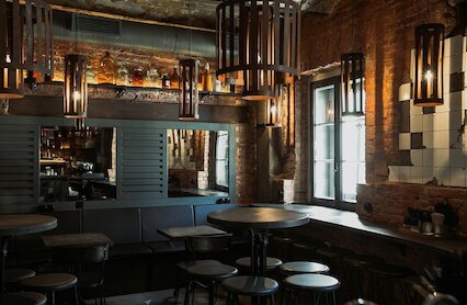 - Ламповый бар с типично питерскими вайбами, простой едой и увлекательными настойками и коктейлями