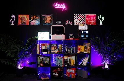 - Лаунж-бар с вайбом Майами, ретро-приставками, пинболом и музыкой в духе 80-х
