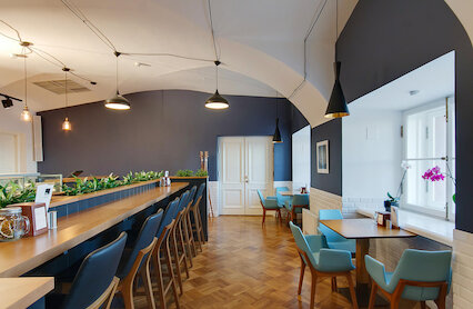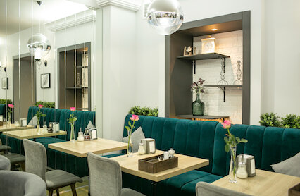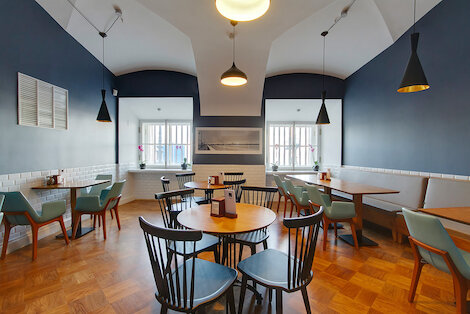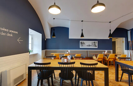 - Интеллигентная пятиэтажная кофейня с олдэй завтраками в историческом особняке в стиле модерн