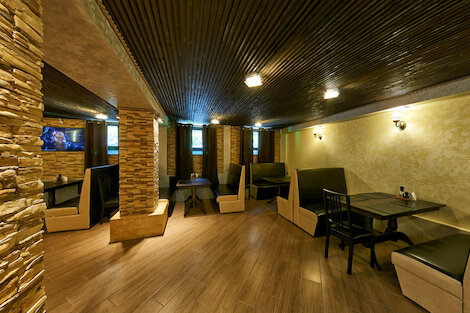 - Атмосферная бильярдная и небольшое кафе с европейской кухней и пивом