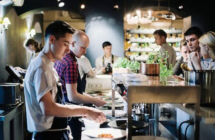 - Большой ресторан с открытой кухней в ТРЦ «Охта Молл»