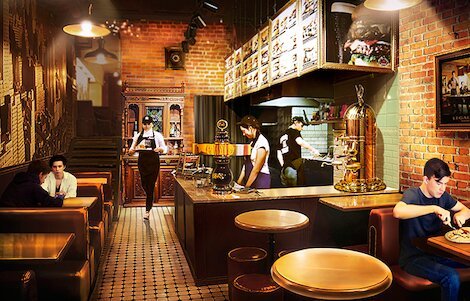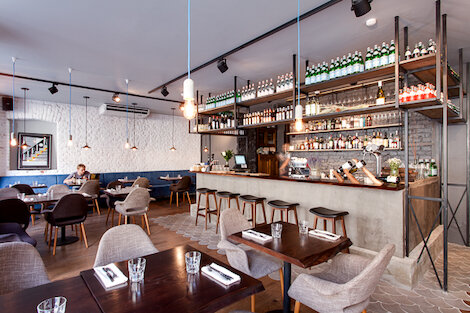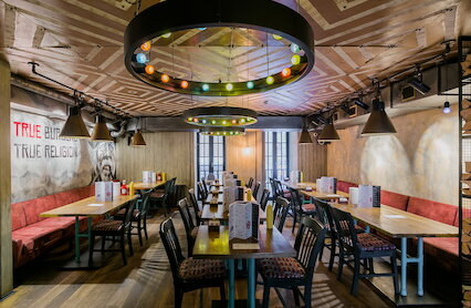 - Ресторан с множеством отсылок к Нью-Йорку в интерьере
