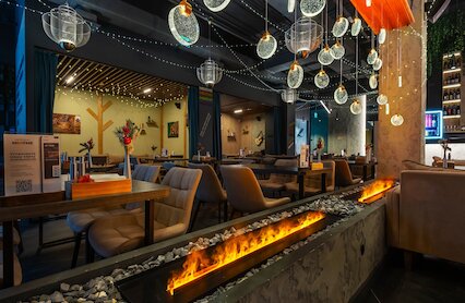 - Атмосферный ресторан и живой музыкой и американской кухней