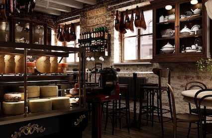 - Атмосферный ресторан с мясными деликатесами за стеной Salone Pasta & Bar