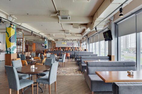 - Трехэтажный ресторанный комплекс, объединяющий сразу три разных формата