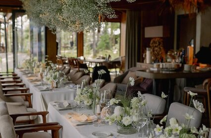 - Ресторан с блюдами на открытом огне в загородном лодж-отеле We Lodge
