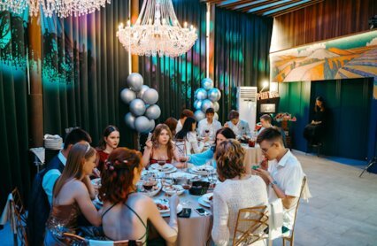 Самый привычный формат — ресторан с отдельным банкетным залом или целиком арендованная усадьба-loft возле метро «Петроградская» или на Васильевском острове. Пространства такого типа предлагают пакет «всё включено»: сервировка на 50–120 человек, горячее меню из трёх перемен, безалкогольный бар, звук и свет для дискотеки, фотозона и место для торжественной части с вручением аттестатов. Цена формируется по депозиту на еду и технический пакет; если забронировать будний день в начале июля, стоимость на человека снижается почти на треть по сравнению с «выпускной ночью». Важно уточнить, до какого часа разрешён громкий звук внутри Садового кольца — лимит обычно до 23:00, в помещении у Финского залива или в индустриальном квартале можно праздновать до раннего утра. Для безопасного перемещения школьников заказывают трансфер «школа-ресторан-дом»; хорошие площадки держат список проверенных автобусных компаний и помогают оформить договор.