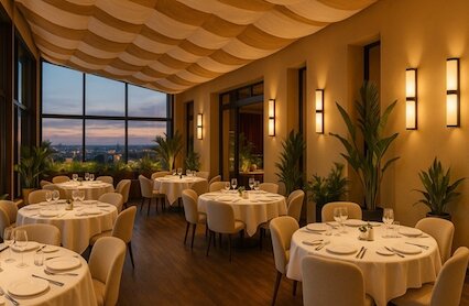 - Панорамный банкетный ресторан с изысканным интерьером на верхних этажах отеля «Азимут»