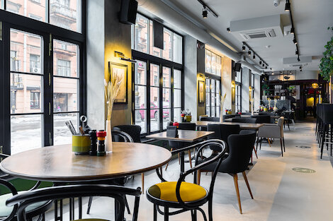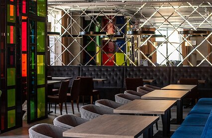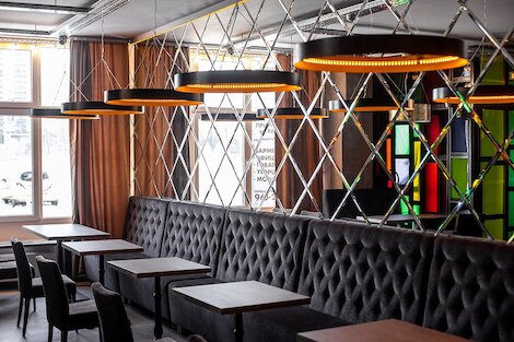 - Трехэтажный ресторанный комплекс, объединяющий сразу три разных формата