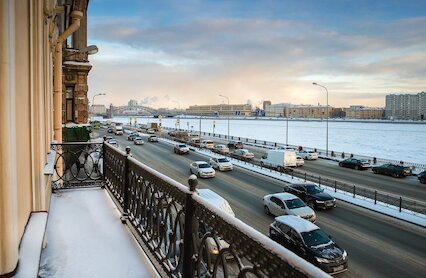 - Большая площадка для мероприятий с видом на Неву на Синопской набережной
