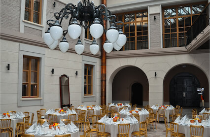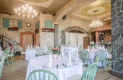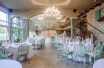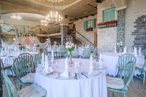 - Двухуровневый банкетный зал с изящным антуражем и летней террасой