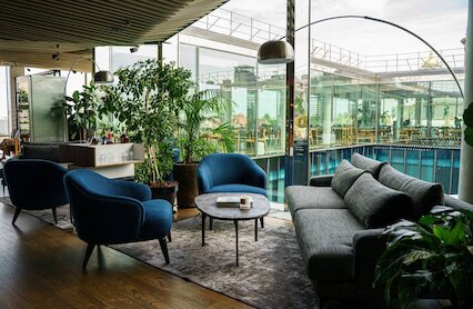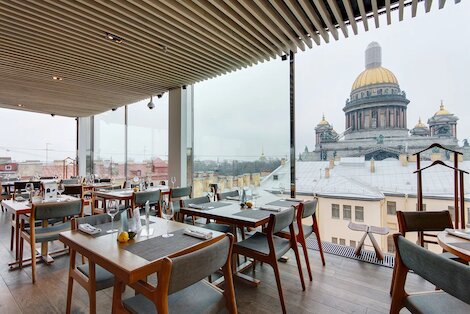 - Заведение при одноименном отеле с видом на набережную Фонтанки