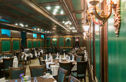 - Ресторан с интерьером начала XX века при одноименном отеле