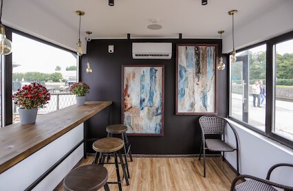 - Просторное кафе в яхт-клубе с видом на Вантовый мост