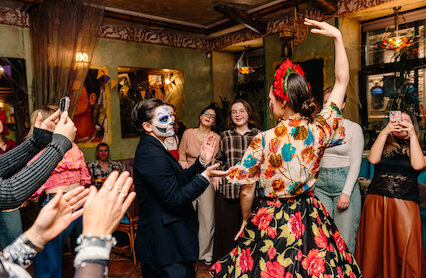 - Жизнерадостное кафе с репродукциями Фриды Кало на улице Чайковского