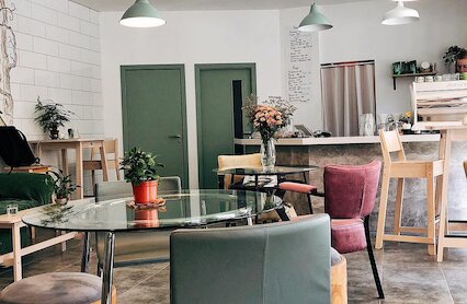 - Спешелти кофейня с богемным дизайном, олдэй завтраками и интересными десертами