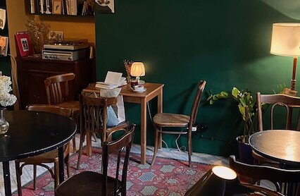 - Интеллектуально-винтажная кофейня с книжками и домашними десертами
