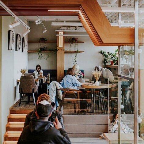 - Просторная спешелти кофейня в скандинавском стиле с завтраками и винной картой