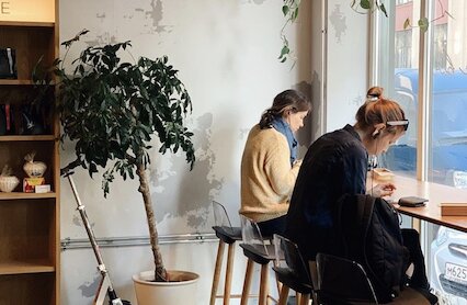 - Спешелти-кофейня с выставками художников и лаконичной винной картой в Севкабеле