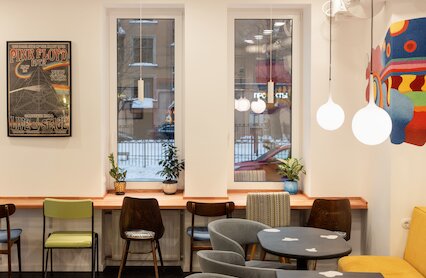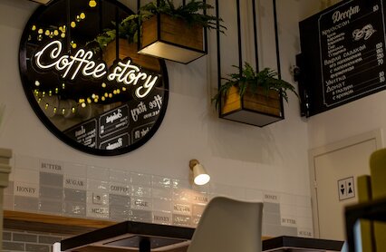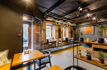 - Интеллигентная пятиэтажная кофейня с олдэй завтраками в историческом особняке в стиле модерн