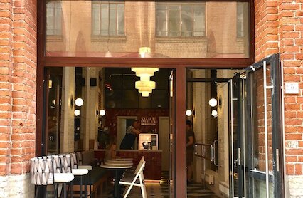 - Стильная кофейня в бывшем здании Сибирского торгового банка